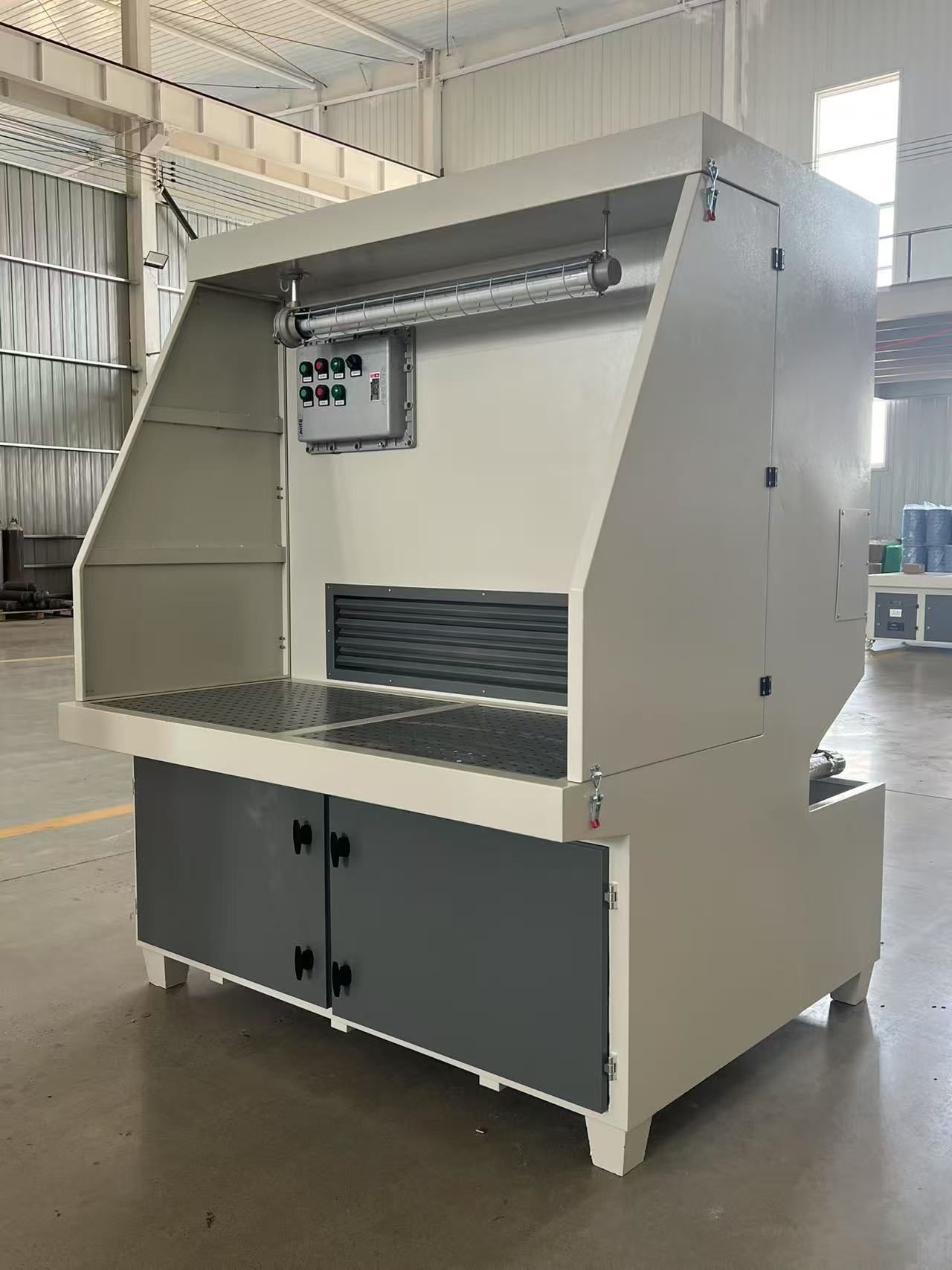 1. Il tavolo della polvere bagnata è costituita da un ugello, un tubo e una pompa dell'acqua. La pompa dell'acqua disegna l'acqua dal serbatoio dell'acqua e la spruzza uniformemente all'interno del collettore di polvere attraverso l'ugello per formare una nebbia d'acqua fine per la cattura della polvere.